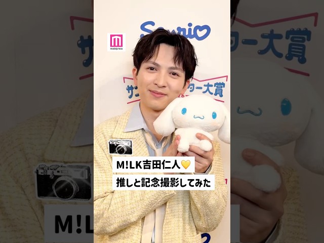 M!LK吉田仁人が推しと記念撮影してみた????舞台裏でシナモンくんと…???? #モデルプレス推しカメラ #shorts